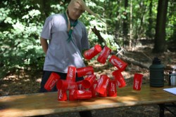 Für unsere tapferen Pfadfinder standen heute passend zum Thema Griechenland die Olympischen Spiele an. In fünf Gruppen aufgeteilt machten sich die Teams nach und nach auf den Weg, die Strecke abzulaufen. Die erste Station fanden sie bereits auf dem Zeltplatz, bei der sie Murmeln in einen Kanister befördern mussten. Dies war von mehr oder weniger Erfolg gekrönt.