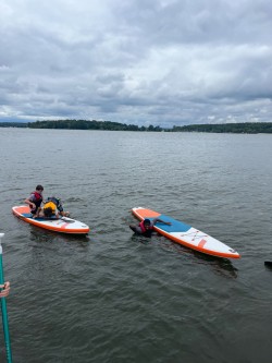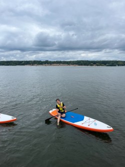 Unsere Jungpfadfinder machten sich schon früh auf den Weg in Richtung Wannsee, denn für sie stand Stand-up paddeling auf dem Programm. Ganz so schnell konnte es jedoch noch nicht losgehen und so mussten sie sich erst noch alle umziehen und ihre Bretter ausleihen. Und auch eine Sicherheitseinweisung und die Schwimmwesten dürfen bei dem Spaß nicht fehlen. Endlich auf den Stand-up-Brettern angekommen, war das Draufbleiben nicht so leicht wie gedacht. Man könnte sagen der Ausflug war eine wacklige Angelegenheit, denn früher oder später lagen – bis auf zwei – alle im Wasser. Das kühle Wasser war jedoch an dem warmen Tag sehr erfrischend. Außerdem hat sich so mancher Jupfi an dem Tag um die anstehende Dusche gedrückt.