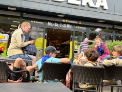 Angefangen bei den Wölflingen. Sie machten sich nach typischer Verzögerung mittags auf den Weg. Für sie stand ein Spaziergang entlang des Flusses, zur Erkundung der Umgebung, auf dem Plan. Mit einem kurzen Stopp an einem Spielplatz, ging die Strecke weiter in den nahegelegenen Wald. Dort sollte ursprünglich nur ein kurzer Mittagessenstopp stattfinden, der sich prompt in eine größere Bastelaktion änderte. Geleitet von ihrer Fantasie, können die Wölflinge aus nichts viel zaubern. So bauten sie alle mit Material aus dem Wald kleine Bötchen, die sie später ins Wasser ließen. Doch zunächst mussten sie wieder mal an den Fluss genommen werden und auf dem Weg dorthin ging die ein oder andere Eichelbesatzung des Schiffes leider verloren. Alle Boote erreichten den Steg jedoch heile, wenn auch nicht mehr ganz vollständig in der pflanzlichen Besatzung. Nachdem die Boote ins Wasser gelassen wurden und allmählich davon getrieben sind, verbrachten die Wölflinge die restliche Zeit damit den vorbeifahrenden Dampfern auf dem Fluss zu salutieren. Als Abschluss durfte das Eis natürlich nicht fehlen.