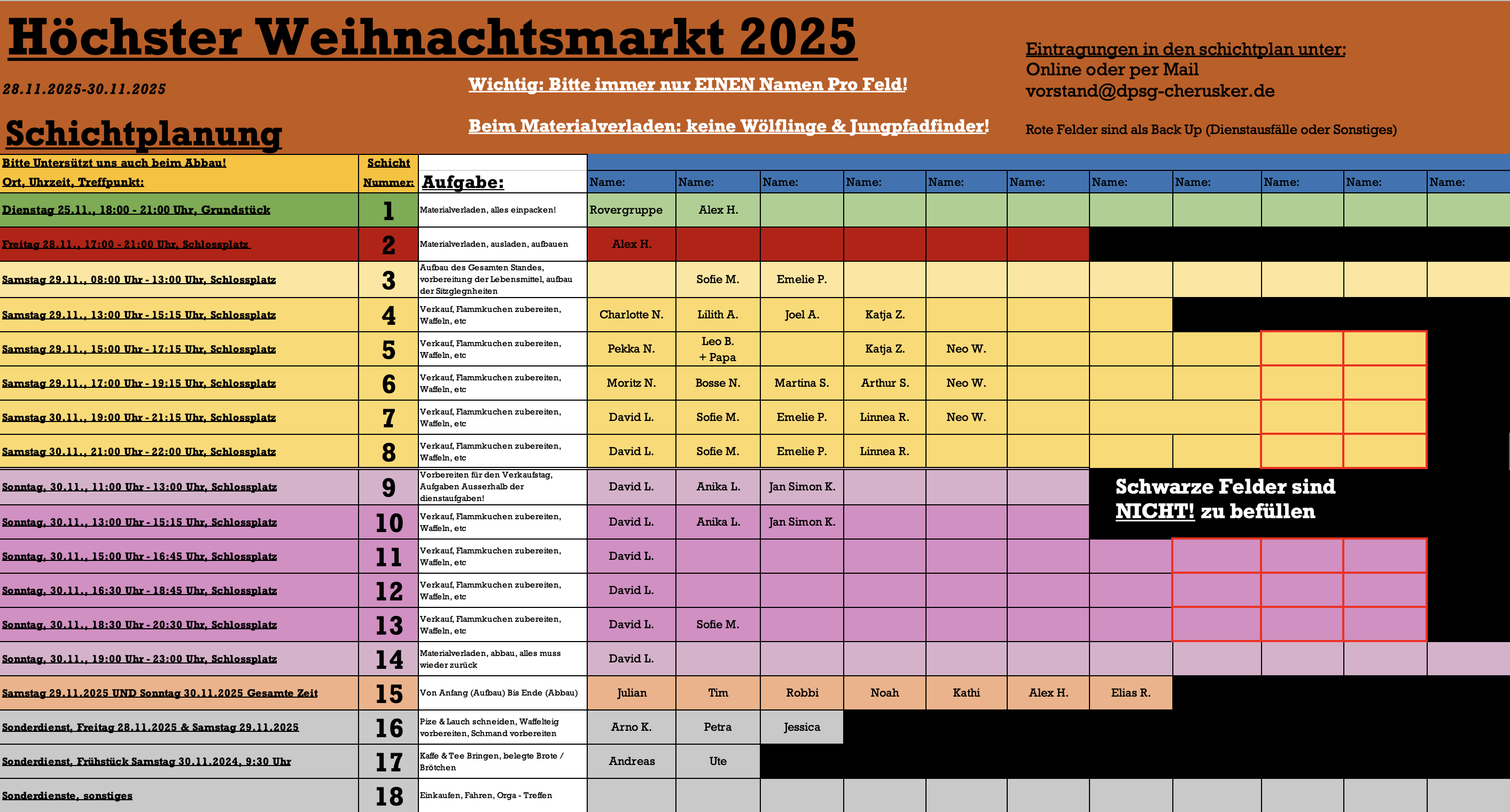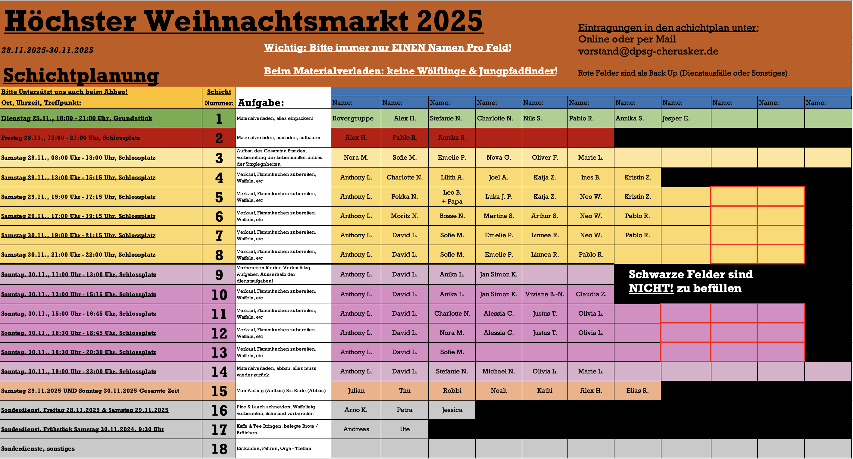 Bitte tragt euch in den Schichtplan ein. Hierbei ist zu beachten: